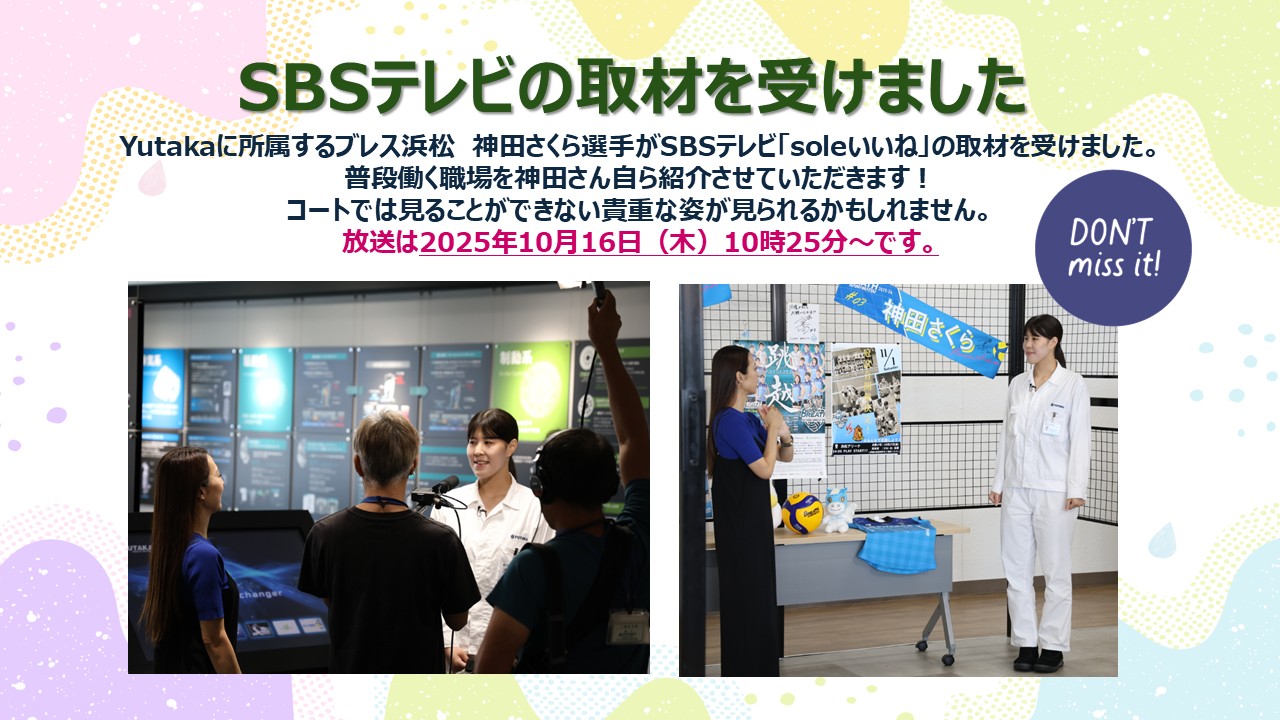 Yutakaに所属するブレス浜松 神田さくら選手がSBSテレビ「soleいいね」の取材を受けました。
