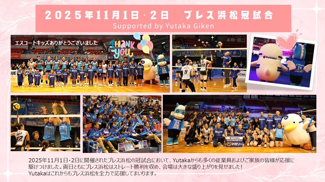 2025年11月1日・2日に開催されたブレス浜松の冠試合において、Yutakaからも多くの従業員およびご家族の皆様が応援に駆けつけました。 両日ともにブレス浜松はストレート勝利を収め、会場は大きな盛り上がりを見せました!